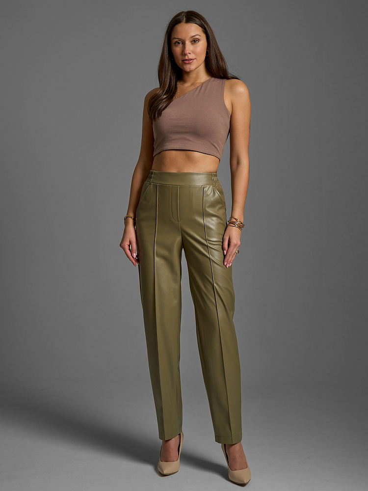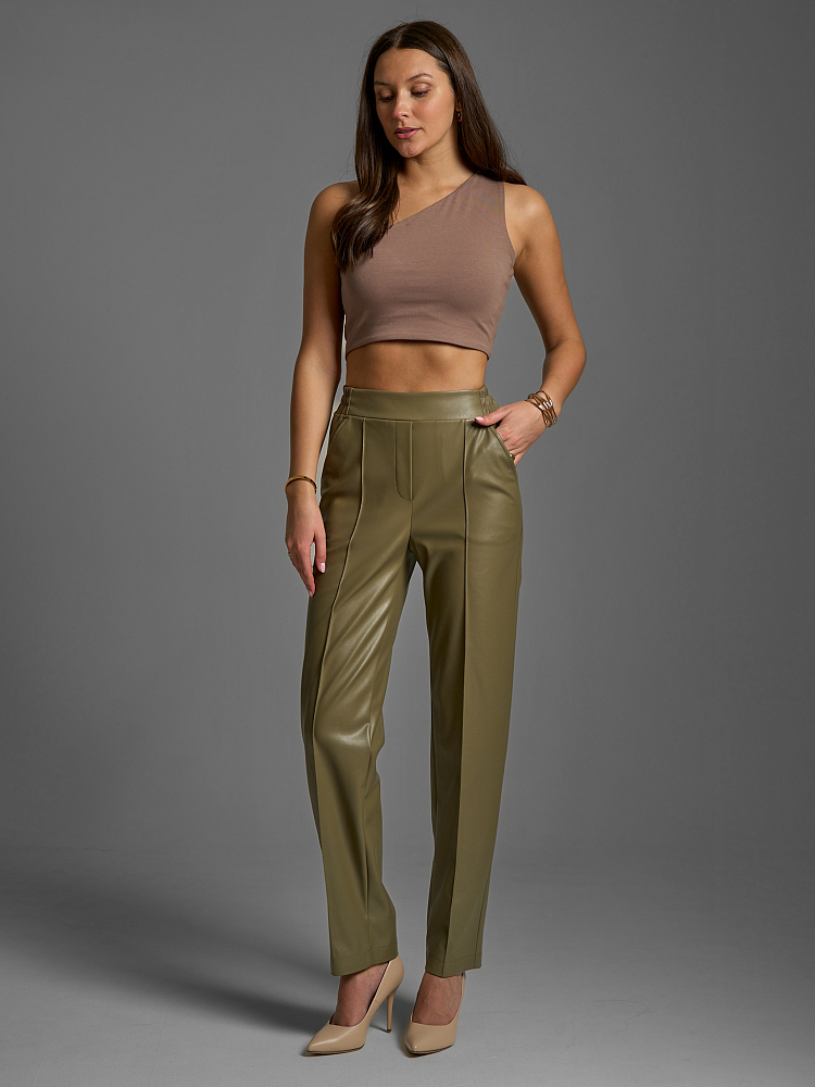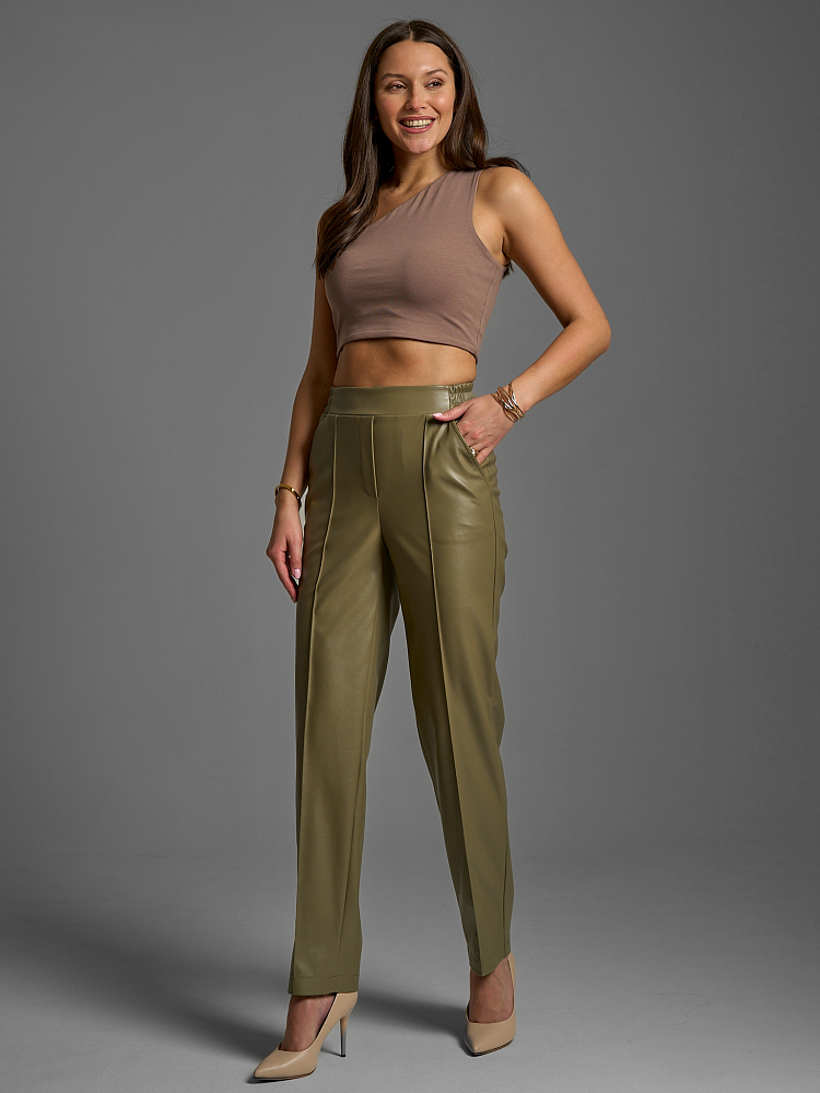 Наш бренд известен своей трендовой капсулой премиум качества и эта модель не исключение. Они доступны в разных ростовках, что позволяет подобрать идеальный размер для любой женщины. Брюки-бананы из эко-кожи — это трендовый и практичный выбор модницы. Этот элемент гардероба может быть использован для составления как нарядных, так и ежедневных комплектов. Выбирая одежду Solo by Endea – Вы приобретаете стиль, комфорт и уверенность в своей неотразимости!