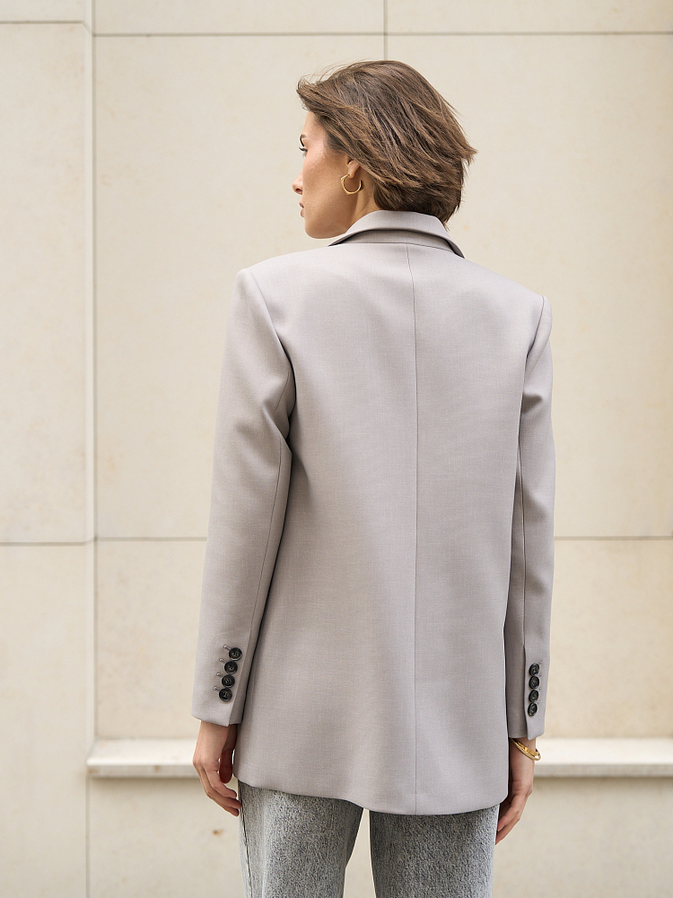 Элегантный черный деловой premium блейзер с карманами с идеальной посадкой правильной длины и кроя. Прямой силуэт, однобортный, с лацканами и воротником на стойке. Рукава втачные двушовные с шлицей в локтевом шве и тремя пуговицами. Жакет женский oversize на подкладке, с подплечниками без шлицы, имеет отложной воротник и лацканы. Вырез глубокий, застежка - на одну петлю и пуговицу. Низ жакета скруглен. Карманы с клапанами добавляют удобства. За изделием легко ухаживать, при бережной сухой чистке ткань не скатывается, не вытягивается и не линяет, так как создан из костюмной ткани высокого качества. Создайте удобный и стильный образ для работы, вечерних выходов или школы.